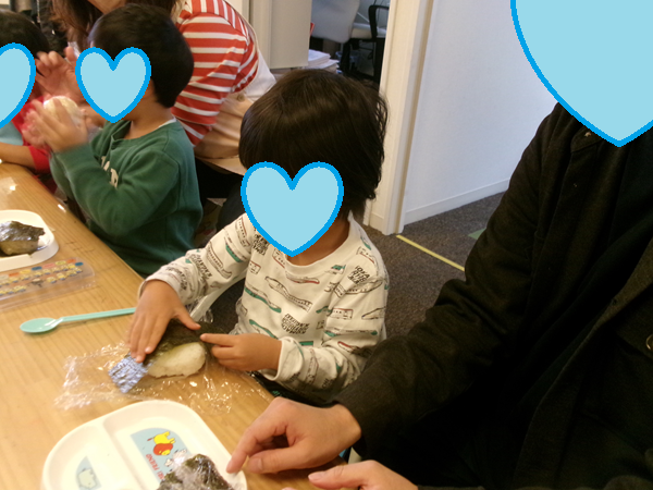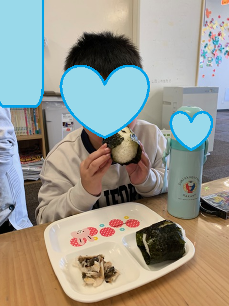 お魚と一緒に食べるおにぎりを握りました!