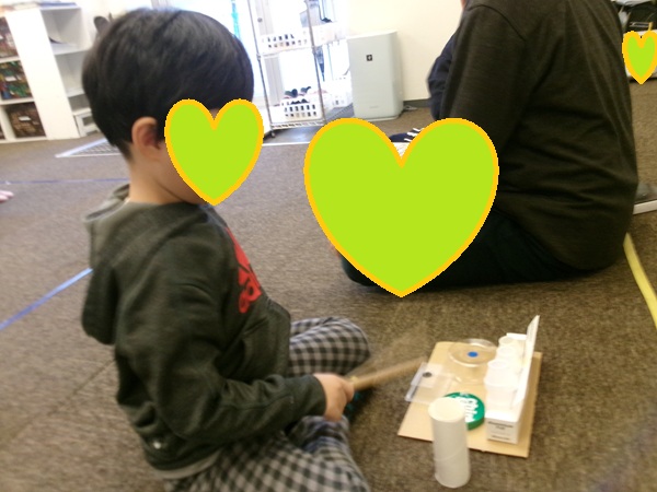土台になる厚紙に貼り付け楽器(太鼓)ができました♪